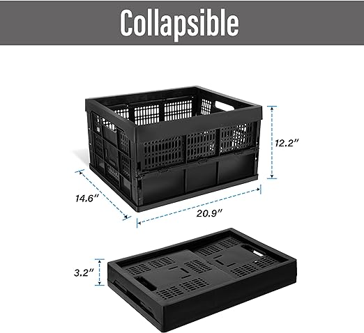 Space-saving solution that combines packing, transport and storage into one reusable, collapsible container Features a sturdy bottom base with open air grated walls, so you can easily view the contents Comfortable, side grip handles make heavy lifting a breeze; Easy to clean, simply hose off or wipe out with a wet cloth When not in use, it collapses down to 3.2" H for compact storage