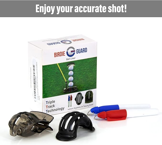 The Burdie Guard golf alignment will triple your confidence on the putting green by making it easier to keep your putter face square to the hole. It will be helpful to mark your balls before playing. It is also an easy way to check your alignment for swinging or putting. The alignment lines make your tee shots easier to line up on target!